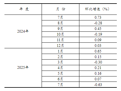 根据季节调整模型自动修正结果,对2024年7月份以来的固定资产投资(不含农户)环比增速进行修订。修订结果及2025年7月份环比数据如下: